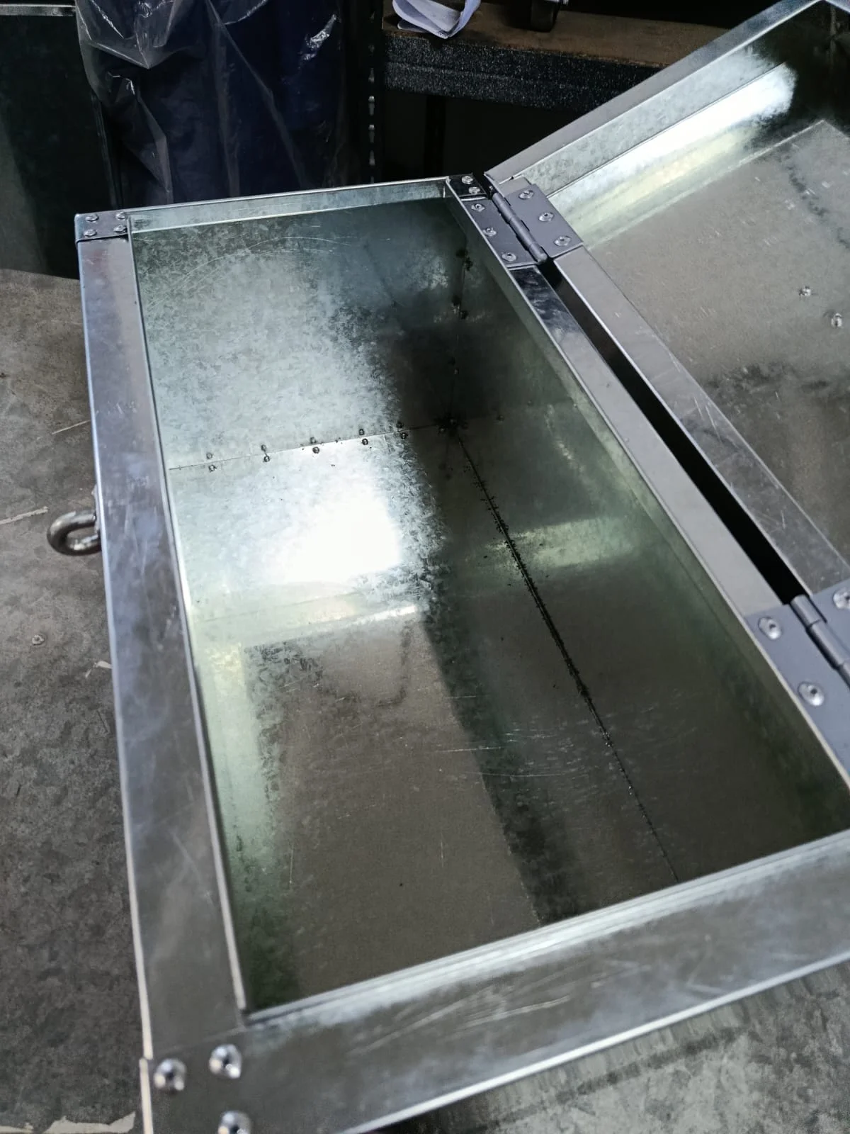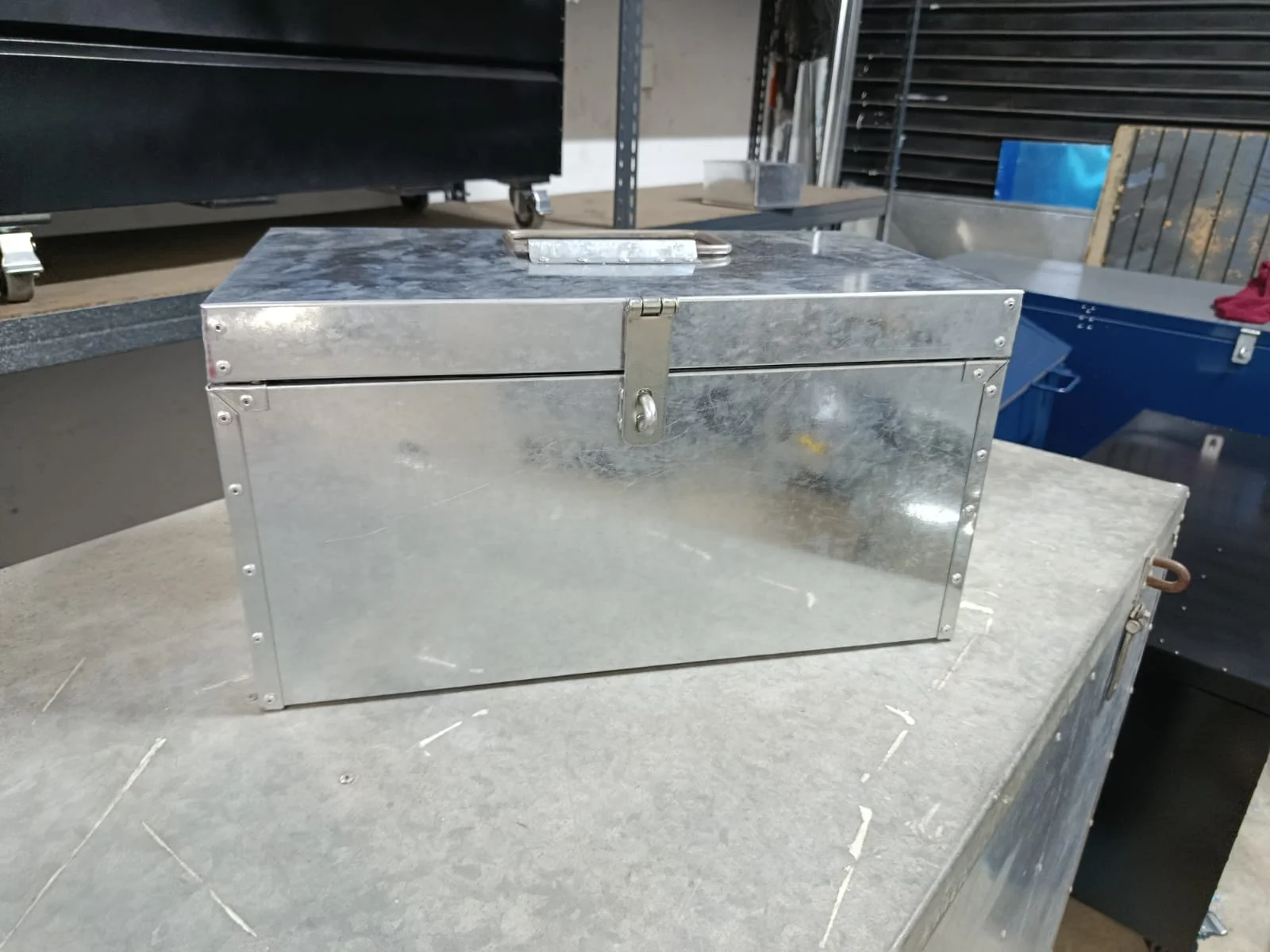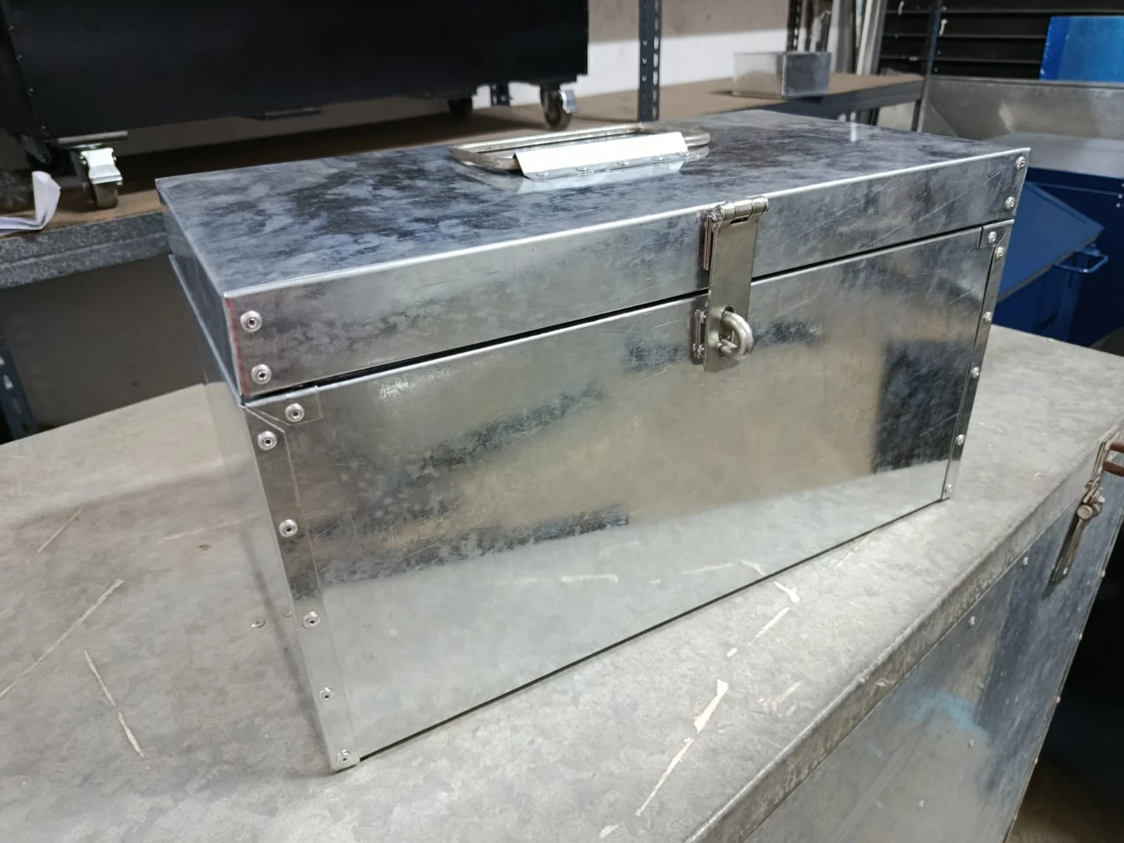 -Dimensiones: 48x25x25 cm. -Bisagras, remachado, cierre de candado. -Construido íntegramente en Plancha Galvanizada, Producto nacional.